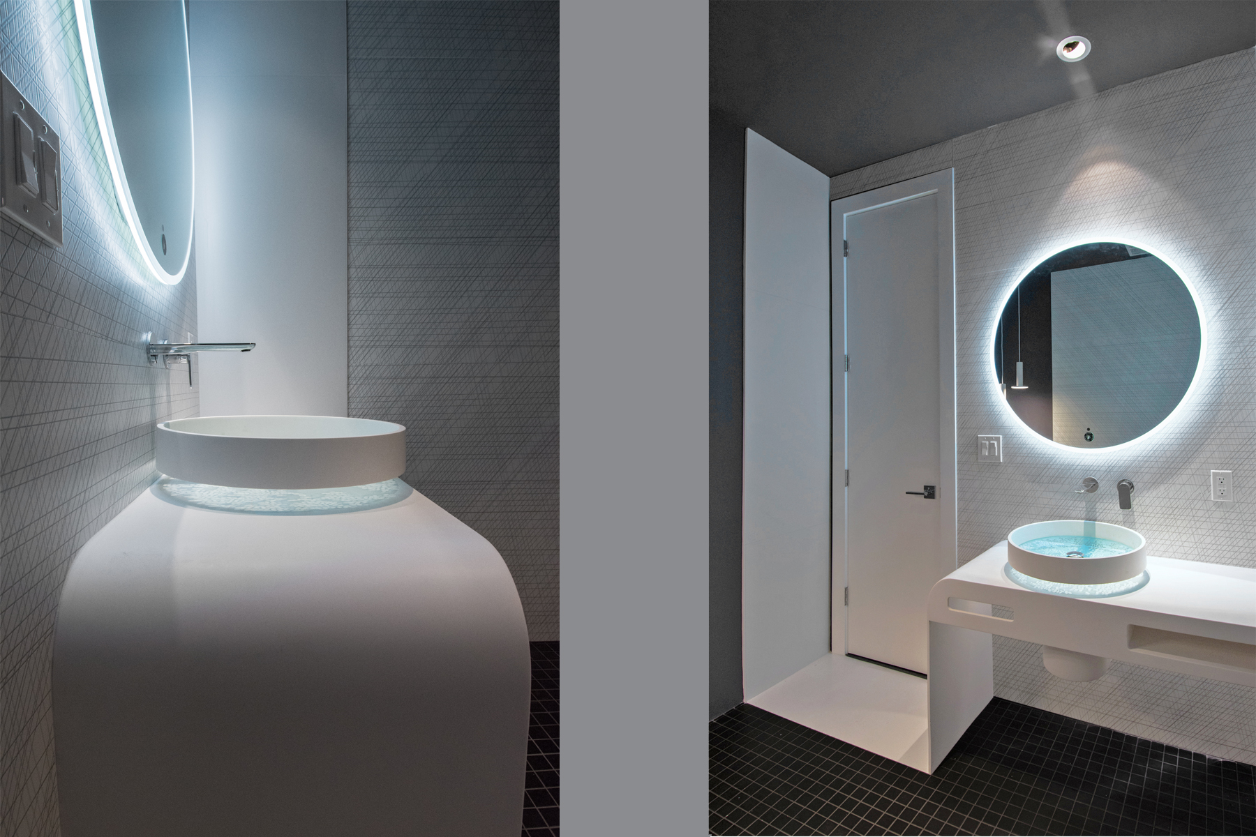 Custom Powder Room with bespoke Corian Vanity