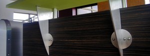 Midcentury Modern inspired custom kitchen with banquette and screen in walnut