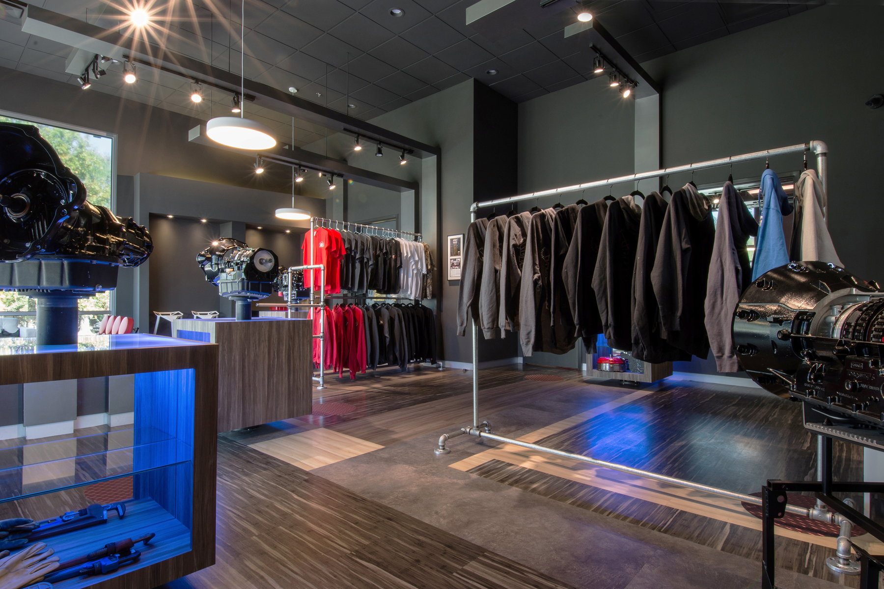 Revmax Torque Converters Mark IIThe more sophisticated Revmax version II retail showroom. All custom fixtures fittings including floating, LED lit display plinths.