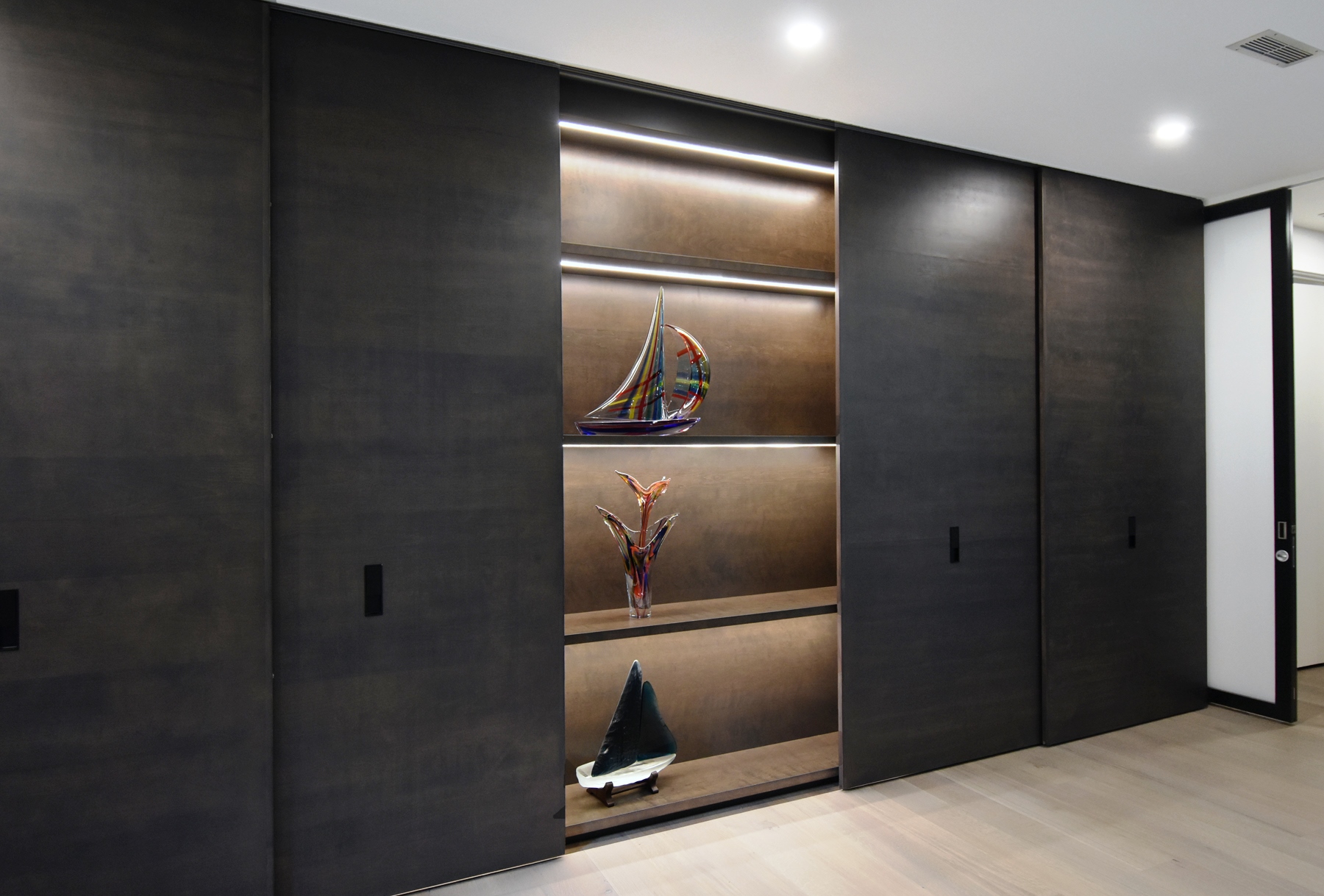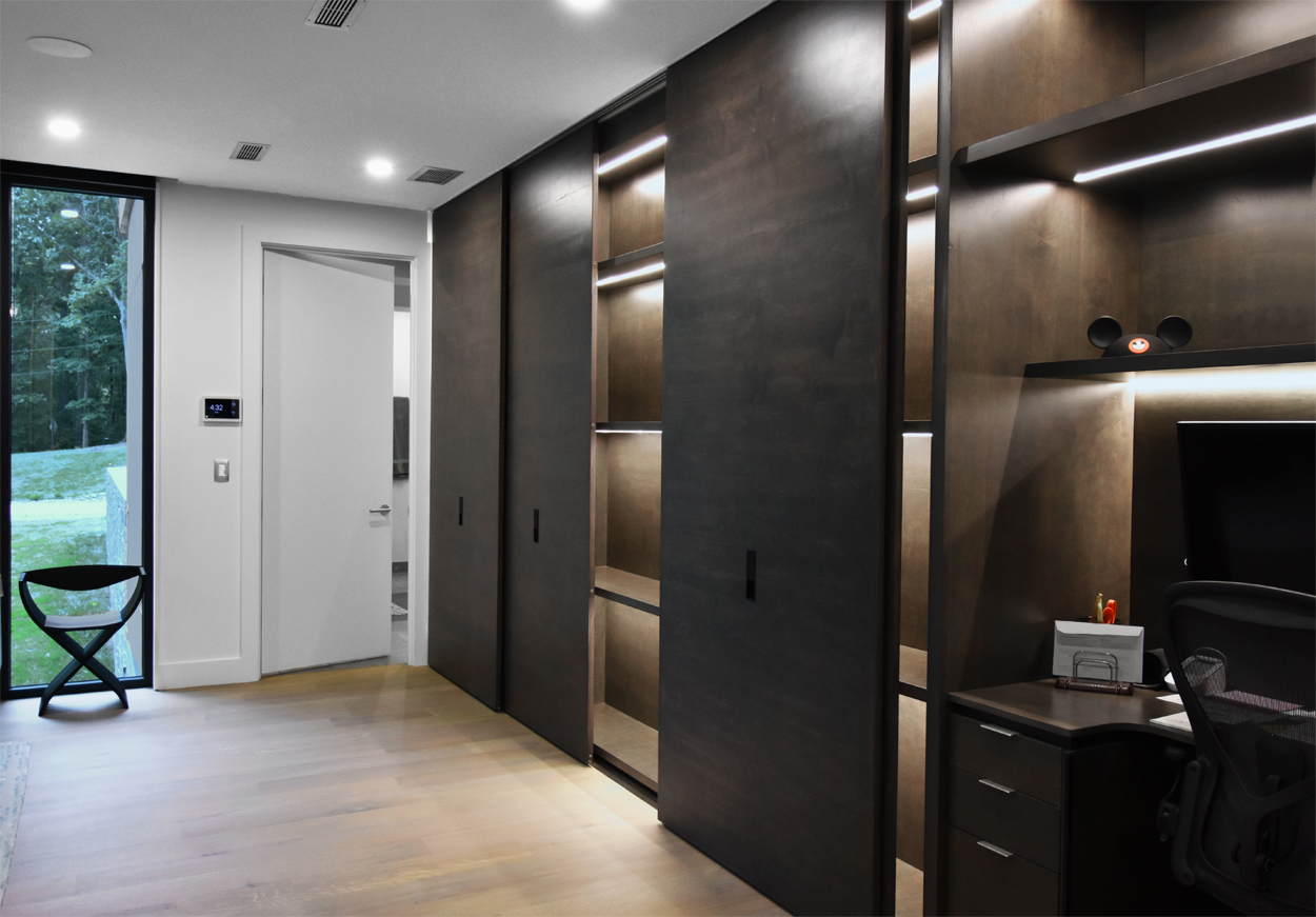 “The team brought on Geri Eaker of Freespace Design to incorporate and extend the architect’s design intentions into the interior design and detailing of the kitchen, bathrooms, and all the built-ins, as well as most of the furnishings. In the process Eaker introduced new ideas and concepts about residential living, as well as a rich material palette, detailing, and unique solutions to intimate practicalities. Geri Eaker points out that: “its’ the details that are important, subliminally, or otherwise. Your hands, your eyes – they pick up on it. Details inform everything.”
