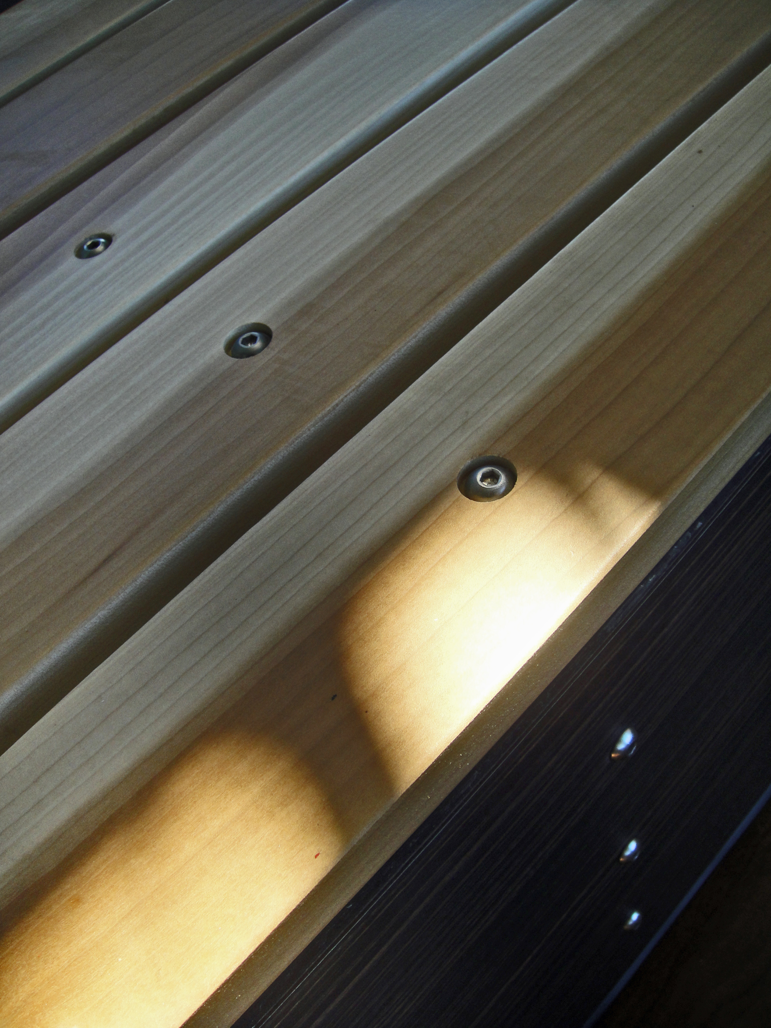 Midcentury Modern inspired custom kitchen with banquette and screen in walnut