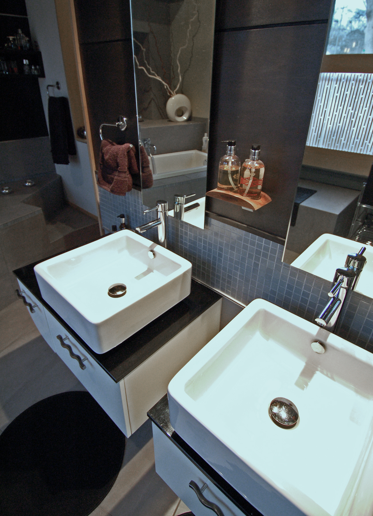 Custom Powder Room with bespoke Corian Vanity