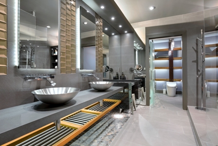 Custom Powder Room with bespoke Corian Vanity