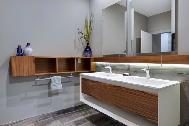 Custom Powder Room with bespoke Corian Vanity
